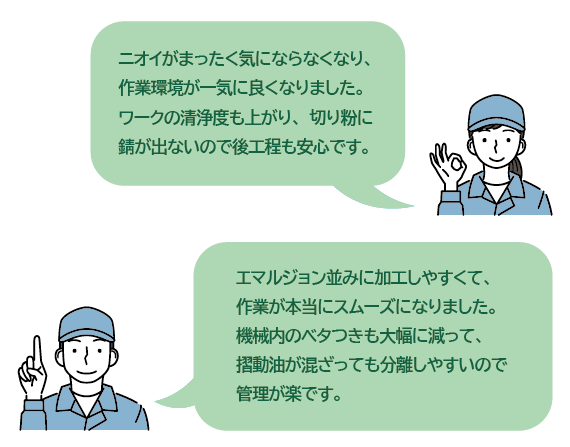 油分を含まないため、油水分離が不要。廃液処理費用を大幅に削減。