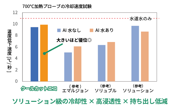 従来の油剤が持つ危険性・泡立ち・潤滑性不足・防錆性不足等の課題を克服した新世代オイルフリークーラントです。