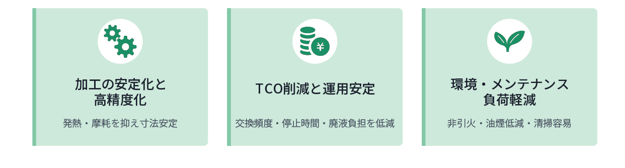 鋼・鋳鉄に優れた防錆効果。長時間加工でも安心。